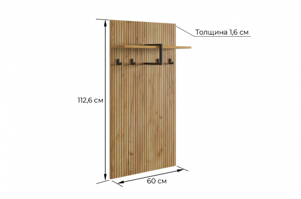 Принт, имитирующий вертикальную фрезеровку придает вешалке уникальный и современный вид, добавляя текстуру и глубину. Материал вешалки – ЛДСП, что обеспечивает прочность и долговечность, а также легкость в уходе.