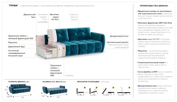 Угловой диван Треви-4 (Империал) продается в интернет-магазине mebel-v-vyikse.ru по цене 142 338 руб. Есть доставка по Выксе и Нижегородской области. Возможность подъема на этаж и сборки уточняйте у менеджера по телефону 8(800)505-27-11.