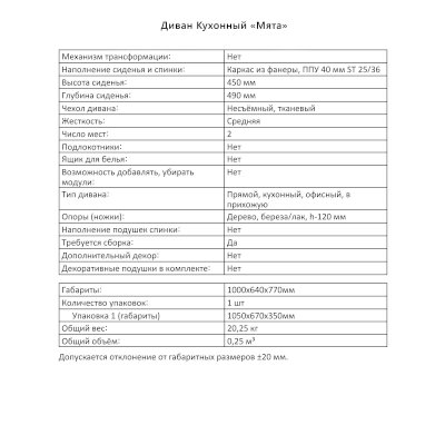 Кухонный диван Мята (Аквилон)
